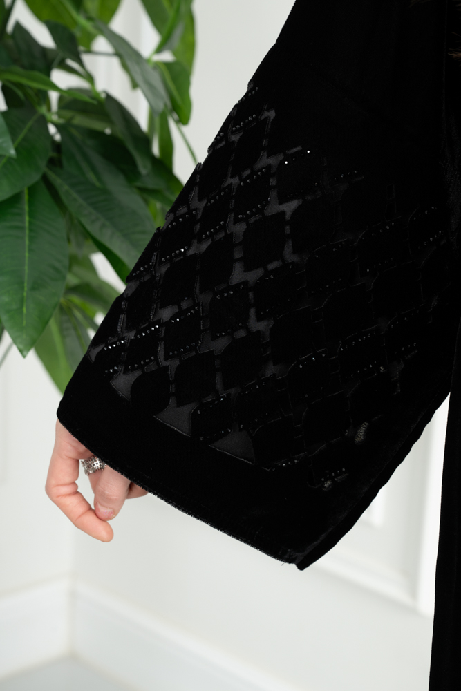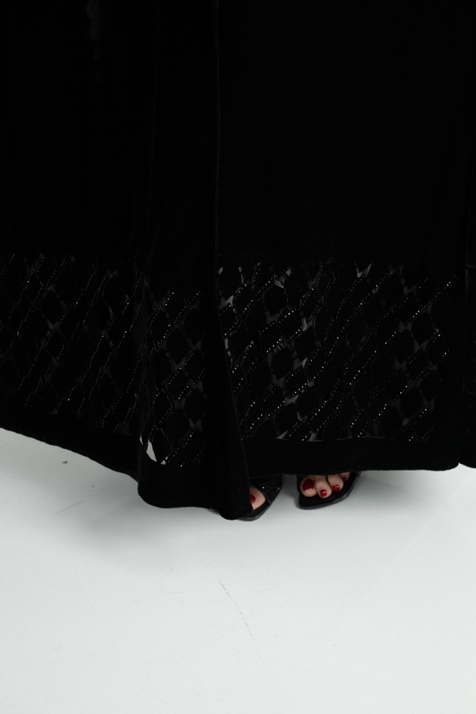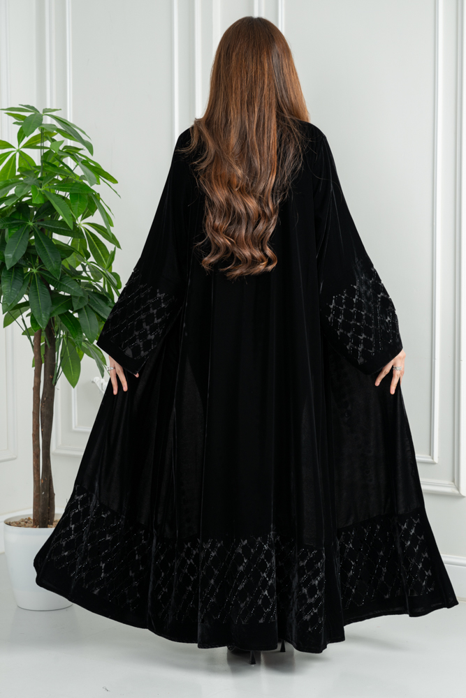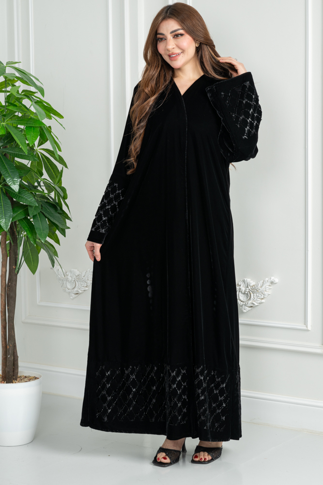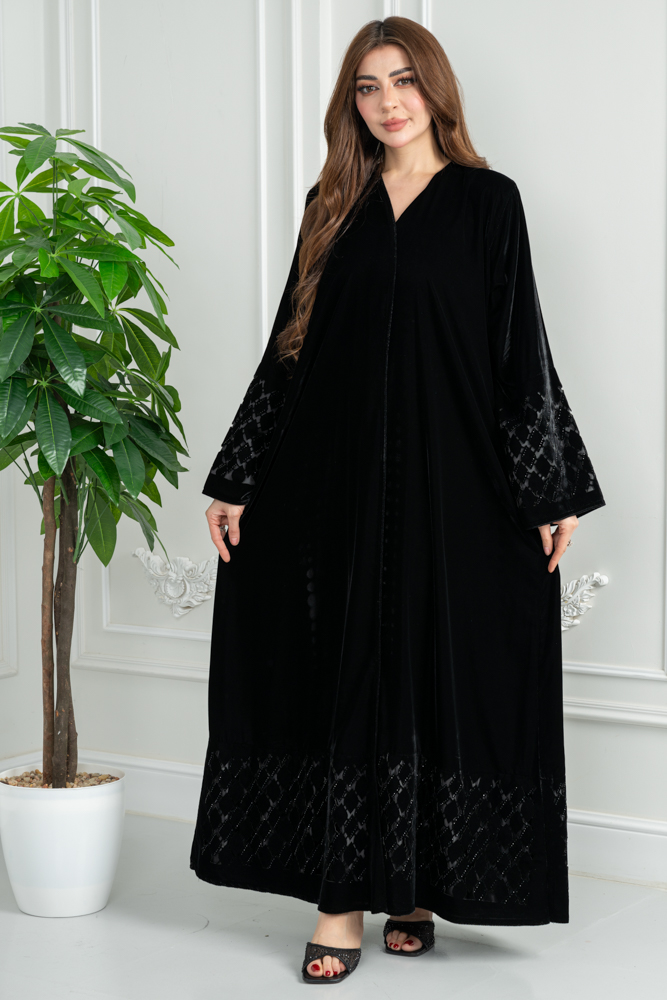 عباية شتوية مخمل مخرم مع كريستال