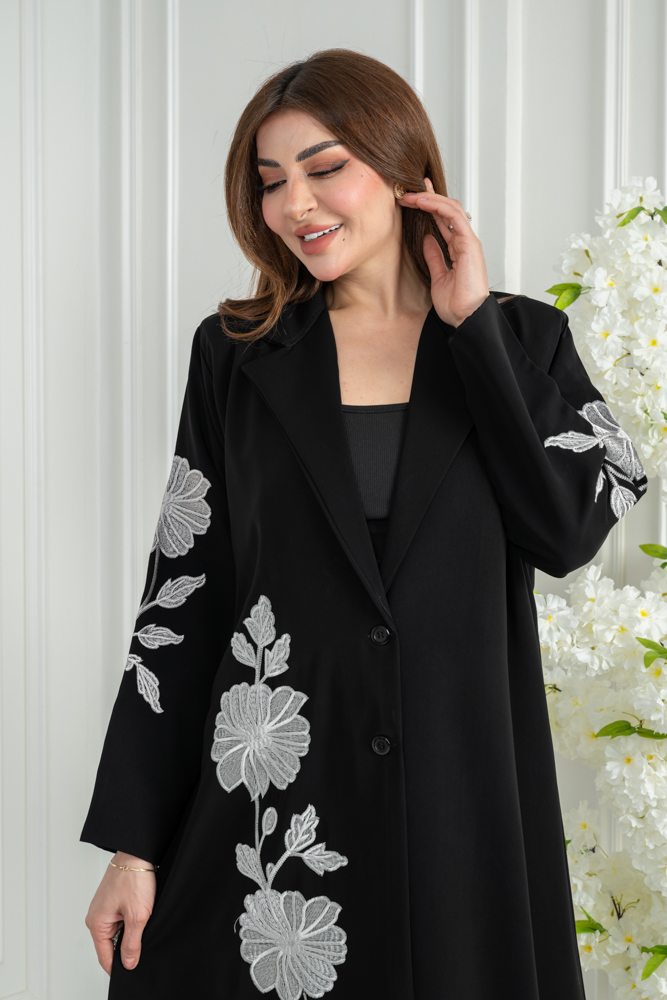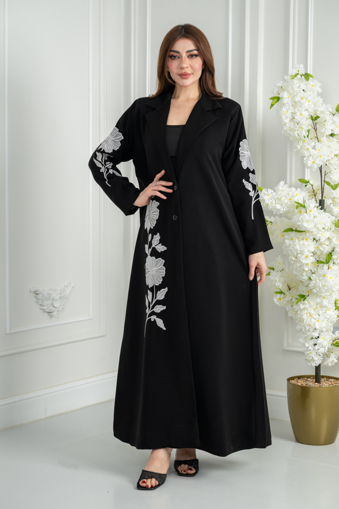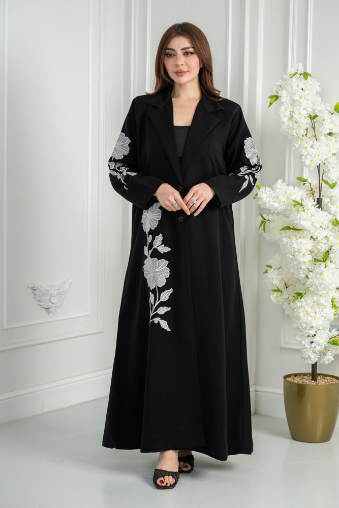 - اللون الأسود مع تطريز كمبيوتر أبيض يمنح تصميمًا راقيًا يسهل تنسيقه مع مختلف الإطلالات.
